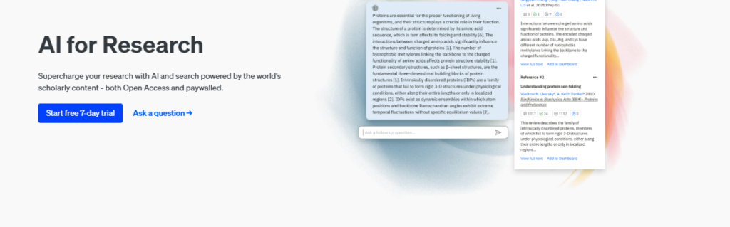 It can analyze research papers and provide more intelligent search results. Instead of simply matching keywords, it understands the context behind queries and returns papers that are most relevant in meaning. A significant highlight of this tool is citation analysis, which helps researchers ascertain the impact and credibility of studies.