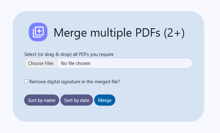 Head to the PDFGPT Merge Tool page (or pick a different reliable online PDF merging tool). You should see a simple screen where you can upload your files.
